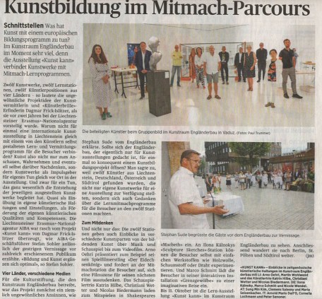 Künstlerbrille® für Erwachsene: Zwölf eingeladene KünstlerInnen aus der bildenden und darstellenden Kunst, Musik und Literatur aus Liechtenstein, Deutschland, Österreich und Südtirol bringen ihre künstlerischen Prozesse in einem Werk zum Ausdruck und machen diese für ein breites Publikum zugänglich.